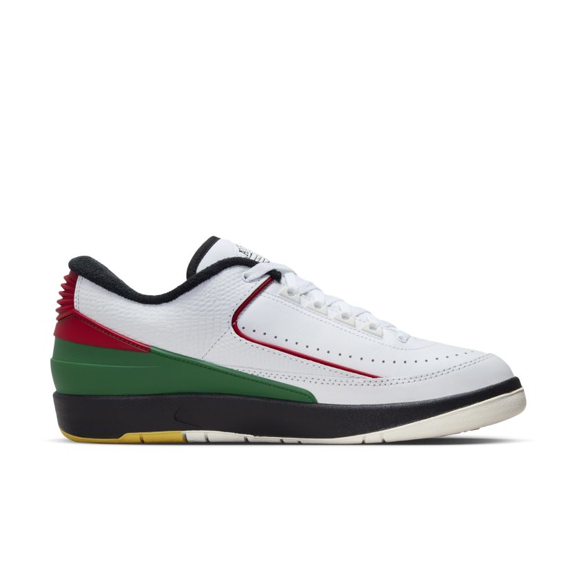 4 3 Air Jordan 2 Retro Low Quai 54 ‘Quai 54’ (FN7686-100) Verkrijgbaar bij de volgende webshops €133.20 – €471.00 Klekt 3 - 5 werkdagen €17,54 verzendkosten > Maten : 40.5414242.5434444.54545-5464747.548.5 €170.00 Foot District 2-3 werkdagen € 7,50 - gratis vanaf € 250,- > Maten : 3636.537.53838.5394040.547.5 €496.07 The Edit LDN 1 - 5 werkdagen € 38.95 + naheffing en belasting (~25%) > Klik hier om beschikbare maten te zien Merk Jordan Model Air Jordan 2 Stijlcode FN7686-100 Kleur Geel / Rood / Wit / Zwart Type Dames / Herensneaker Officiële colorway White/University Red/Chrome Yellow/Black Introductieprijs 169.99 Publicatie datum 16 juni, 2023 Geupdate 4 november, 2025 Beschrijving De Air Jordan 2 Retro Low Quai 54 met stylecode FN7686-100 is een opvallende sneaker die uitblinkt in zowel stijl als comfort. Deze heruitgave van de klassieke Air Jordan 2 is gemaakt ter ere van het 20-jarig bestaan van het Quai 54 Streetball-toernooi in Parijs. De sneaker heeft een hoogwaardig leder en textiel en is voorzien van een schone, moderne look. De Nike Air-demping in de hiel biedt ultralicht en responsief comfort en de rubberen buitenzool zorgt voor tractie op diverse oppervlakken. Deze unisex sneaker is beschikbaar in de kleuren die geïnspireerd zijn op het Pan-Afrikaans gedachtegoed. De AJ2 is perfect om te dragen als je deelnemer bent aan het toernooi in Parijs, maar ook als je gewoon op straat een statement wilt maken. Kom in de stijl van Quai 54 met de Air Jordan 2 Retro Low Quai 54! Vergelijk de prijzen van deze sneaker op Sneakers4u, met meer dan 170 webshops. Laat je uitdrukken, op en naast het veld met de Air Jordan 2 Retro Low Quai 54! Meer Air Jordan 2 colorways Air Jordan 2 Retro Low ‘Summit White and Ice Blue’ (DX4401-146) DX4401-146 Sale 82% Vanaf € 44.99 Verkrijgbaar bij € 8 Air Jordan 2 x Nina Chanel Abney WMNS White Red (DQ0558-160) DQ0558-160 Sale 64% Vanaf € 97.20 Verkrijgbaar bij € 8 Jordan 2 Retro Craft Sunset Haze (W) Sail / Desert / Sunset Haze / Light Steel Grey (DX4400-118) DX4400-118 Sale 58% Vanaf € 79.99 Verkrijgbaar bij € 7 Jordan Brand Air Jordan 2 Retro ‘Mauve’ Black (DX4400-005) DX4400-005 Sale 63% Vanaf € 94.97 Verkrijgbaar bij € 6 Air Jordan 2 ‘Cement Grey’ White / Cement Grey-Sail-Black (DR8884-100) DR8884-100 Sale 86% Vanaf € 94.97 Verkrijgbaar bij € 5 Meer Jordan sneakers Meer Air Jordan 2 colorways