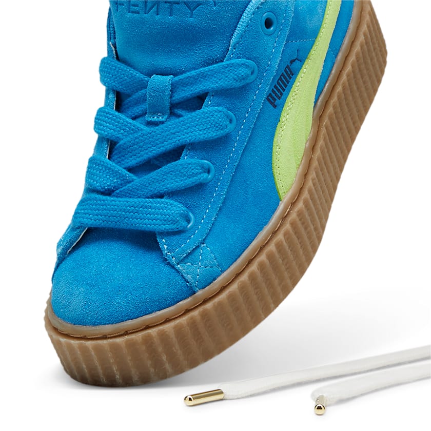 17 4 Fenty x Puma Creeper Phatty GS ‘Speed Blue’ (397587-02) Tijdelijk niet beschikbaar Helaas, deze sneaker is momenteel uitverkocht of nog niet te koop bij onze 204 partners. Dit betekent dat er op dit moment geen aangesloten webshops zijn die deze sneakers op voorraad hebben. Wij zijn bezig met een nieuwe functionaliteit om een melding te kunnen ontvangen wanneer deze sneakers weer op voorraad zijn. Tot die tijd nodigen we jou uit om regelmatig opnieuw te komen kijken. Om je toch te inspireren hebben we enkele andere populaire colorways van de Puma Creeper modellen neergezet. Scroll dus zeker even naar beneden of klik op de onderstaande button om alle Puma Creeper modellen te bekijken. Puma Creeper Merk Puma Model Puma Creeper Stijlcode 397587-02 Kleur Blauw / Groen Type Dames / Herensneaker Release date 01-12-2023 Officiële colorway Speed Blue / Lime Pow / Gum Publicatie datum 3 mei, 2024 Geupdate 14 november, 2025 Beschrijving Meer Puma Creeper colorways Puma Creeper Phatty Blue (396403-02) 396403-02 Sale 53% Vanaf € 140.00 Verkrijgbaar bij € 2 Puma Creeper Phatty Nubuck Green Fog / Puma Gold / Gum (396813-02) 396813-02 Vanaf € 139.99 Verkrijgbaar bij € 2 Puma Creeper Phatty Nubuck Warm White / Puma Gold / Gum (396813-03) 396813-03 Vanaf € 139.99 Verkrijgbaar bij € 2 Puma Creeper Phatty Purple (396403-03) 396403-03 Vanaf € 230.00 Verkrijgbaar bij € 1 Puma Der FENTY x PUMA Creeper Phatty von Rihanna ist aus weichem Cord und Wildleder gefertigt und mit goldenen Lace-Tips und der klassischen Creeper-Sohle ausgestattet. Erhältlich in Triple-Black, bietet er eine stilvolle und bequeme Ergänzung für deine tägliche Garderobe. “Black” (399870-03) 399870-03 Vanaf € 129.99 Verkrijgbaar bij € 1 Meer Puma sneakers Meer Puma Creeper colorways