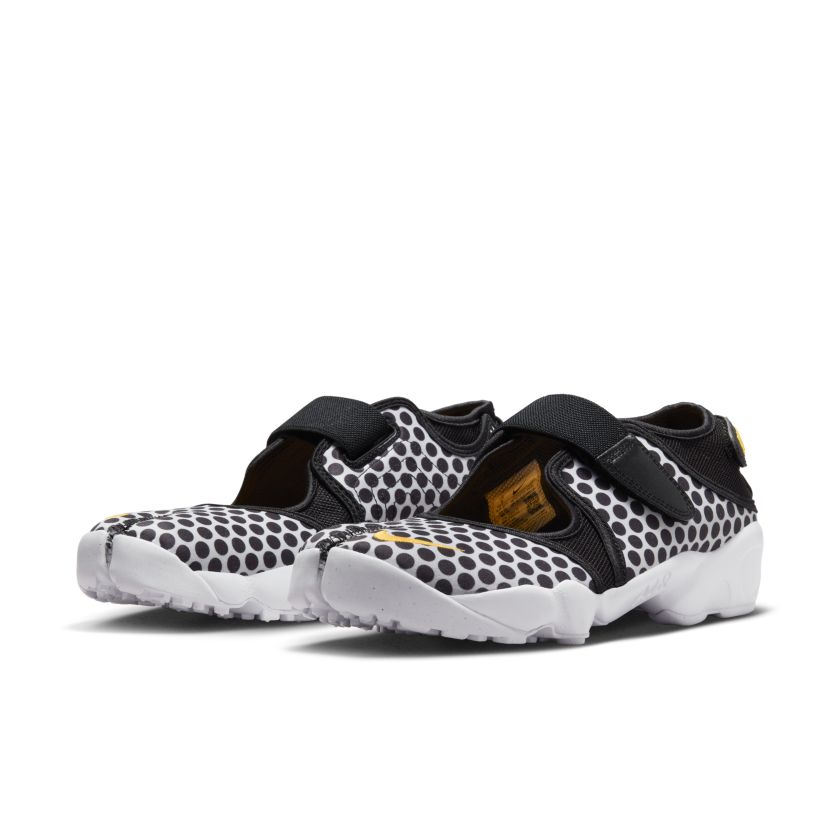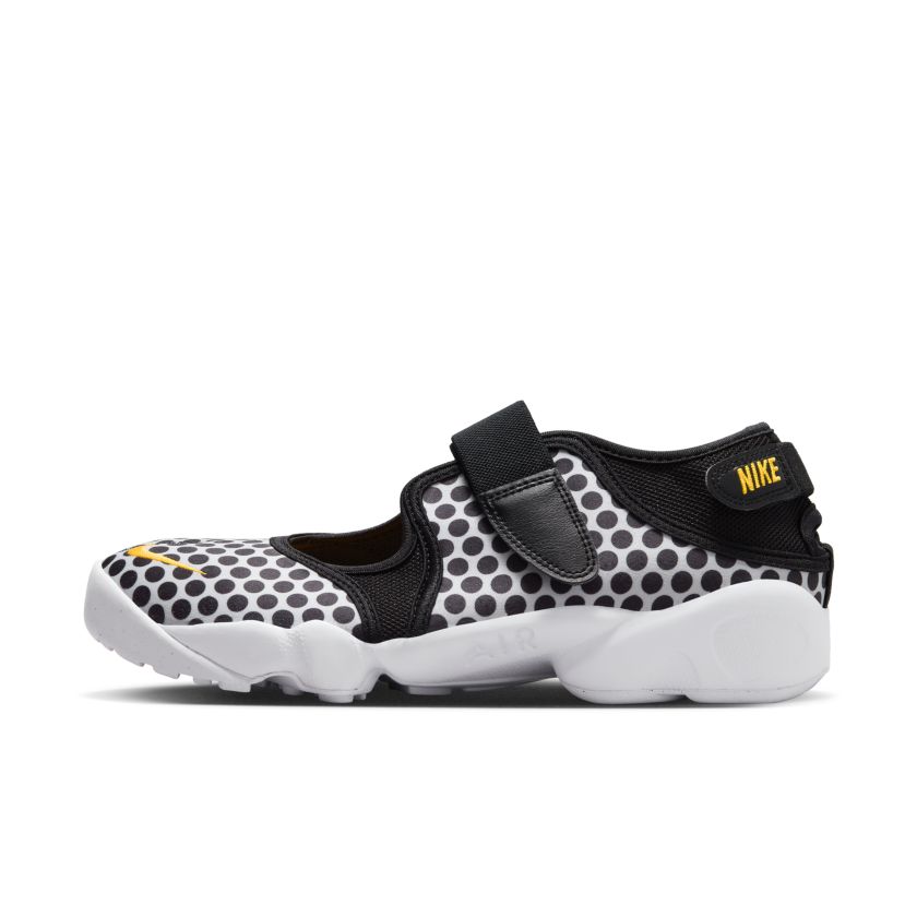 12 10 Nike Air Rift Breathe ‘Black, White and Laser Orange’ (DX5422-001) Verkrijgbaar bij de volgende webshops €61.00 NAKED 3 - 5 werkdagen € 7,- gratis vanaf € 150,- > Maten : 36.5 €109.99 Nike 2 - 4 werkdagen € 5,- gratis vanaf € 50,- > Maten : 35.536.538 €156.00 Klekt 3 - 5 werkdagen €17,54 verzendkosten > Maten : 38.54142.5 Merk Nike Model Nike Rift Stijlcode DX5422-001 Kleur Oranje / Wit / Zwart Type Damessneaker Officiële colorway Black/White/Laser Orange Introductieprijs 109.99 Publicatie datum 8 juni, 2023 Geupdate 2 december, 2025 Beschrijving De Nike Air Rift Breathe DX5422-001 is de perfecte sneaker voor de zomer. De zwarte mesh staat in perfecte balans met de witte zool, waardoor het polkadotpatroon heerlijk kan dansen bij elke stap die je zet. De subtiele hits van Laser Orange voegen wat luide kleur toe aan het zwart-witte visuele ritme. En dankzij het ademende bovenwerk voelen deze schoenen aan alsof je op wolkjes loopt. De Air Rift is ontworpen door Nike-ontwerper Tinker Hatfield, die de schoen uitbracht in 1996. Het is een unisexmodel, dus perfect voor zowel mannen als vrouwen. De Nike Air Rift Breathe DX5422-001 is het vervolg op deze klassieke sneaker. De schoen is een perfect voorbeeld van hoe Nike klassieke stijlen kan updaten met modern comfort. De schoen is gemaakt van ademend materiaal, waardoor je voeten op warme dagen heerlijk koel blijven. Ook de gewatteerde binnenzool en het rubberen buitenzool zorgen voor comfort en stabiliteit. Als je op zoek bent naar de perfecte zomerschoen, dan is de Nike Air Rift Breathe DX5422-001 de perfecte keuze. Vergelijk prijzen op de sneaker zoekmachine Sneakers4u, die vergelijkingen biedt in meer dan 170 verschillende webshops. Als je deze schoenen eenmaal hebt geprobeerd, wil je ze steeds weer opnieuw dragen. Meer Nike Rift colorways Nike Air Rift Black (FN7772-001) FN7772-001 Sale 59% Vanaf € 83.97 Verkrijgbaar bij € 4 Nike ACG Lowcates Limestone Green Glow Dark Driftwood Sail Limestone / Green Glow-dark Driftwood-sail (DX2256-200) DX2256-200 Sale 27% Vanaf € 102.00 Verkrijgbaar bij € 5 Nike Air Rift Breathe ‘Black, White and Laser Orange’ (DX5422-001) DX5422-001 Sale 61% Vanaf € 61.00 Verkrijgbaar bij € 3 Nike Air Rift Breathe ‘Concord and Varsity Maize’ (FZ4749-400) FZ4749-400 Sale 50% Vanaf € 119.99 Verkrijgbaar bij € 3 Nike Air Rift ‘Camo and Vivid Orange’ (FJ5447-200) FJ5447-200 Sale 64% Vanaf € 110.00 Verkrijgbaar bij € 3 Meer Nike sneakers Meer Nike Rift colorways
