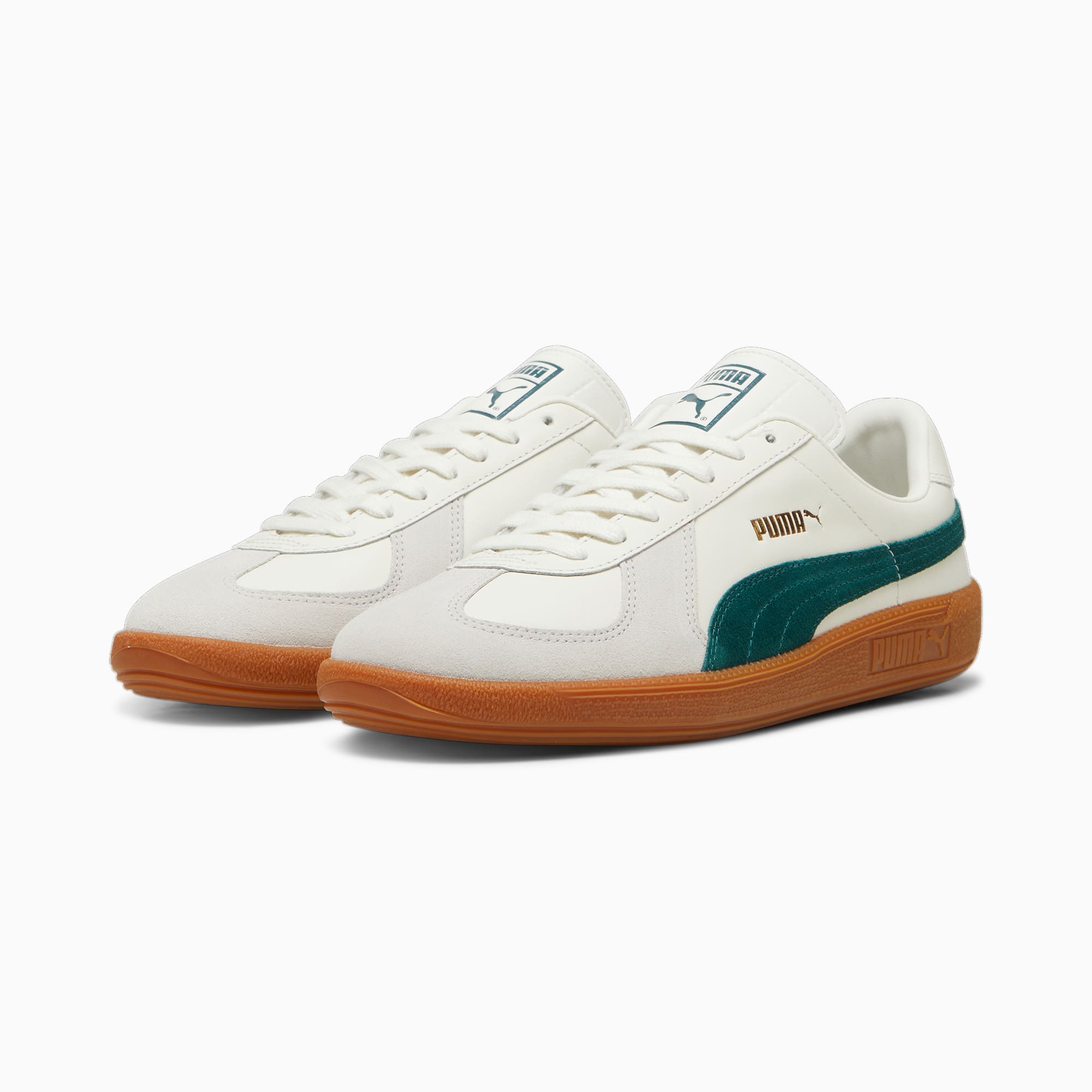 6 3 Puma Army Trainer Wit (386607-15) Tijdelijk niet beschikbaar Helaas, deze sneaker is momenteel uitverkocht of nog niet te koop bij onze 204 partners. Dit betekent dat er op dit moment geen aangesloten webshops zijn die deze sneakers op voorraad hebben. Wij zijn bezig met een nieuwe functionaliteit om een melding te kunnen ontvangen wanneer deze sneakers weer op voorraad zijn. Tot die tijd nodigen we jou uit om regelmatig opnieuw te komen kijken. Om je toch te inspireren hebben we enkele andere populaire colorways van de Puma Army Trainer modellen neergezet. Scroll dus zeker even naar beneden of klik op de onderstaande button om alle Puma Army Trainer modellen te bekijken. Puma Army Trainer Merk Puma Model Puma Army Trainer Stijlcode 386607-15 Kleur Wit Type Herensneaker Introductieprijs 89.95 Publicatie datum 27 juli, 2024 Geupdate 15 november, 2025 Beschrijving De Army Trainer heeft zijn oorsprong in het Duitse leger in de jaren 70. Het is een stijl die de tand des tijds echt heeft doorstaan. De nieuwe versie van het vintage icoon uit het archief straalt een tijdloze aantrekkingskracht uit dankzij hetzelfde leren bovenwerk met een suède overlay op de neus als het origineel. Hij heeft een rubberzool voor grip en is volledig vervaardigd van leer voor comfort. Deze schoen wordt jouw favoriet voor iedere dag. Laag model Bovenwerk van leer met suède op de neus Rubberen tussenzool Rubberen zool PUMA-logo in reliëf en folieprint op het zijpaneel PUMA Formstrip op de beide zijkanten. PUMA Army Trainer sneakers voor Heren wit, maat 35.5. Meer Puma Army Trainer colorways Puma Army Trainer Sugared Almond / Prairie Tan (386607-08) 386607-08 Vanaf € 89.99 Verkrijgbaar bij € 2 Puma Army Trainer Puma White / Nimbus Cloud (386607-01) 386607-01 Vanaf € 81.00 Verkrijgbaar bij € 2 Puma Army Trainer Wit/Blauw/Grijs (386607-09) 386607-09 Vanaf € 81.00 Verkrijgbaar bij € 1 Puma Army Trainer Zwart (386607-02) 386607-02 Vanaf € 81.00 Verkrijgbaar bij € 1 Puma Army Trainer Paars/Grijs/Wit (386607-12) 386607-12 Vanaf € Verkrijgbaar bij € 0 Meer Puma sneakers Meer Puma Army Trainer colorways