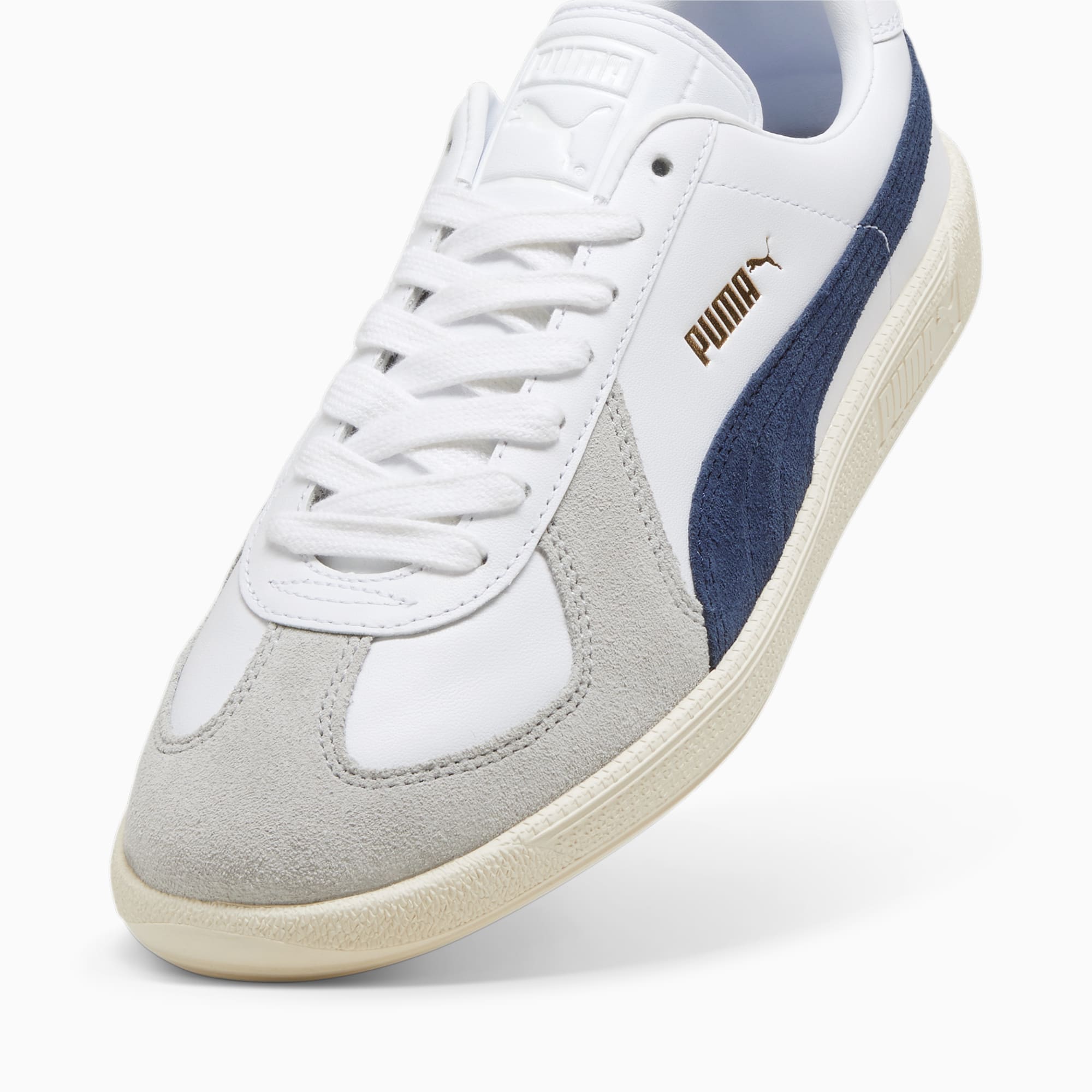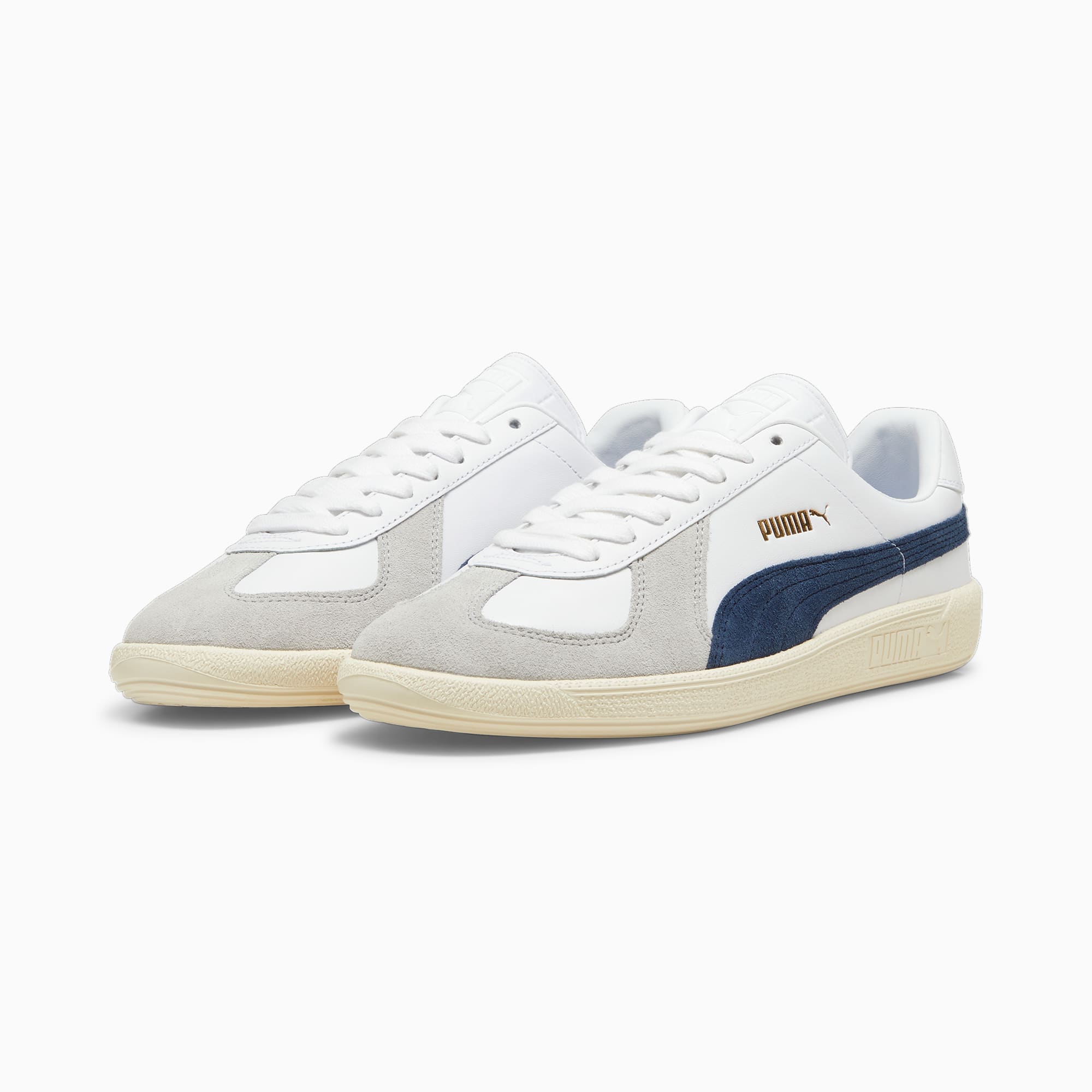 7 2 Puma Army Trainer Wit/Blauw/Grijs (386607-09) Verkrijgbaar bij de volgende webshops €81.00 Spartoo 2 - 4 dagen Gratis verzending > Maten : 39404142434445 Merk Puma Model Puma Army Trainer Stijlcode 386607-09 Kleur Blauw / Grijs / Wit Type Herensneaker Introductieprijs 89.95 Publicatie datum 27 juli, 2024 Geupdate 3 december, 2025 Beschrijving De Army Trainer heeft zijn oorsprong in het Duitse leger in de jaren 70. Het is een stijl die de tand des tijds echt heeft doorstaan. De nieuwe versie van het vintage icoon uit het archief straalt een tijdloze aantrekkingskracht uit dankzij hetzelfde leren bovenwerk met een suède overlay op de neus als het origineel. Hij heeft een rubberzool voor grip en is volledig vervaardigd van leer voor comfort. Deze schoen wordt jouw favoriet voor iedere dag. Laag model Bovenwerk van leer met suède op de neus Rubberen tussenzool Rubberen zool PUMA-logo in reliëf en folieprint op het zijpaneel PUMA Formstrip op de beide zijkanten. PUMA Army Trainer sneakers voor Heren wit, maat 35.5. Meer Puma Army Trainer colorways Puma Army Trainer Sugared Almond / Prairie Tan (386607-08) 386607-08 Vanaf € 89.99 Verkrijgbaar bij € 2 Puma Army Trainer Puma White / Nimbus Cloud (386607-01) 386607-01 Vanaf € 81.00 Verkrijgbaar bij € 2 Puma Army Trainer Wit/Blauw/Grijs (386607-09) 386607-09 Vanaf € 81.00 Verkrijgbaar bij € 1 Puma Army Trainer Zwart (386607-02) 386607-02 Vanaf € 81.00 Verkrijgbaar bij € 1 Puma Army Trainer Paars/Grijs/Wit (386607-12) 386607-12 Vanaf € Verkrijgbaar bij € 0 Meer Puma sneakers Meer Puma Army Trainer colorways