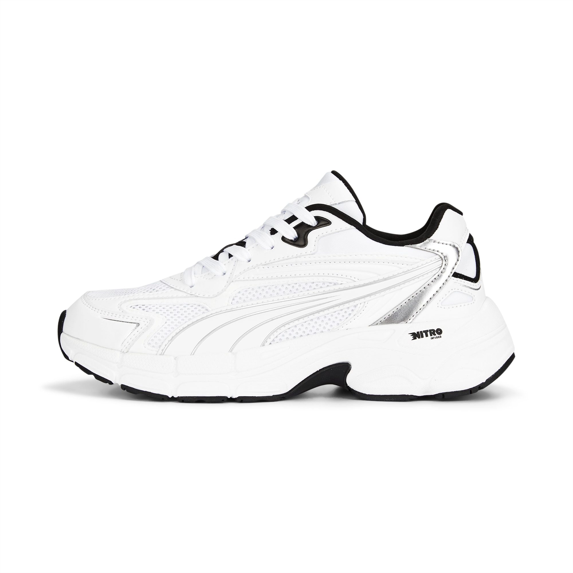 8 6 Puma Teveris Nitro Metallic Zilver/Wit (391098-03) Verkrijgbaar bij de volgende webshops PUMA 1 - 2 werkdagen € 4,95 - gratis verzending vanaf € 75,- > Maten : 35.5363737.53838.5394040.5414242.5 Merk Puma Model Puma Teveris Nitro Stijlcode 391098-03 Kleur Wit / Zilver Type Damessneaker Introductieprijs 100.00 Publicatie datum 9 februari, 2023 Geupdate 3 december, 2025 Beschrijving Geïnspireerd op PUMA’s hardloopassortiment uit de jaren 2000, maakt de Teveris Nitro gebruik van prestatiegerichte esthetiek om alledaags schoeisel met een sportief randje te creëren. Dit paar heeft overlays van zacht suède, metallic details en reliëf voor een frisse look, plus NITRO-technologie voor ultiem comfort onder de voeten. ALLE INS EN OUTS NITRO: Geavanceerd met stikstof geïnjecteerd schuim, ontworpen voor superieure responsiviteit en demping in een lichtgewicht verpakking OPTIFIT: Adaptief pasvormsysteem ontworpen om een stevige omsluiting en ondersteuning te bieden tijdens het sporten PROFOAMLITE: Extreem lichtgewicht EVA ontworpen om je landing te dempen en je elke stap voort te stuwen PUMAGRIP: Duurzame prestatie-rubbersamenstelling ontworpen voor tractie op alle oppervlakken Mesh basis Imitatieleren overlays op de wreef, veterstrook, schacht en hiel Underlays van warmtegeperst suède op schacht en hiel CMEVA-tussenzool Rubberen buitenzool Mesh rand Tong van mesh met label van imitatieleer PUMA Formstrip op de beide zijkanten PUMA Cat-logo op de achterkant van de hiel. PUMA Teveris Nitro Metallic sneakers voor dames zilver, maat 35.5. Meer Puma Teveris Nitro colorways Puma Teveris NITRO Worn Out (390033-05) 390033-05 Vanaf € 110.00 Verkrijgbaar bij € 1 Puma Teveris Nitro Wit (388774-24) 388774-24 Vanaf € 99.95 Verkrijgbaar bij € 1 Puma Teveris Nitro Blauw/Grijs (388774-25) 388774-25 Vanaf € 99.95 Verkrijgbaar bij € 1 Puma Teveris Nitro Metallic Zilver/Wit (391098-03) 391098-03 Vanaf € 100.00 Verkrijgbaar bij € 1 Puma Teveris Nitro Wit/Blauw (388774-26) 388774-26 Vanaf € 99.95 Verkrijgbaar bij € 1 Meer Puma sneakers Meer Puma Teveris colorwaysMeer Puma Teveris Nitro colorways